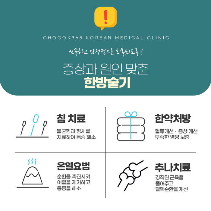 바르지 못하고 비틀어진 경추와 척추로 유발된 통증, 문제점을 개선해주고 안정적이고 신속하게 회복하실 수 있게 도와드리고 있습니다. 대를 잇는 처방을 기반하고 있는 초곡365한의원을 통하여 불균형하고 비틀어진 신체를 바로 잡고 제기능을 회복하며 정상 범위로 회복해야 합니다.