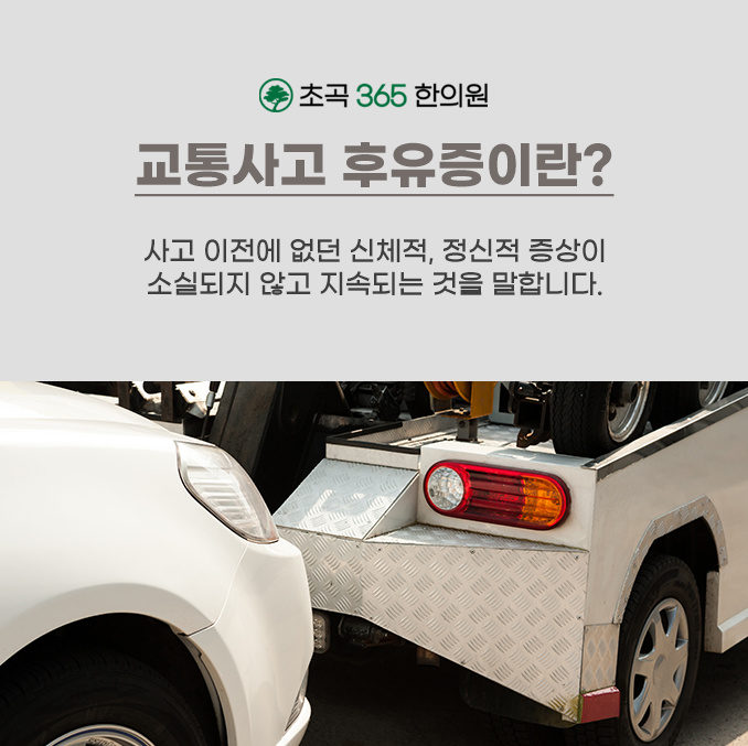 우선 강한 충격을 겪게 되면 신체적, 정신적인 후유증세가 복합적으로 발생할 수가 있습니다. 우리 몸은 근육이나 관절, 장부, 신경 등 여러 구조물들이 유기적으로 연결이 되어있기 때문에, 하나의 충격이 전신의 문제로 이어질 수가 있습니다. 즉, 처음에는 한 군데만 아팠다가 점점 2차적인 병증으로 발전할 수가 있는 것이죠.