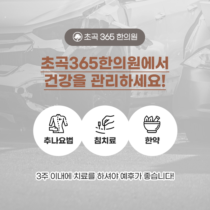 포항초곡 야간진료한의원에서는 사고 현장을 수습하는 것도 중요하지만, 무엇보다 건강 상에 이상이 없는지 살피고 한방 치료를 통해 후유증을 예방하시라고 강조드리고 있습니다.
