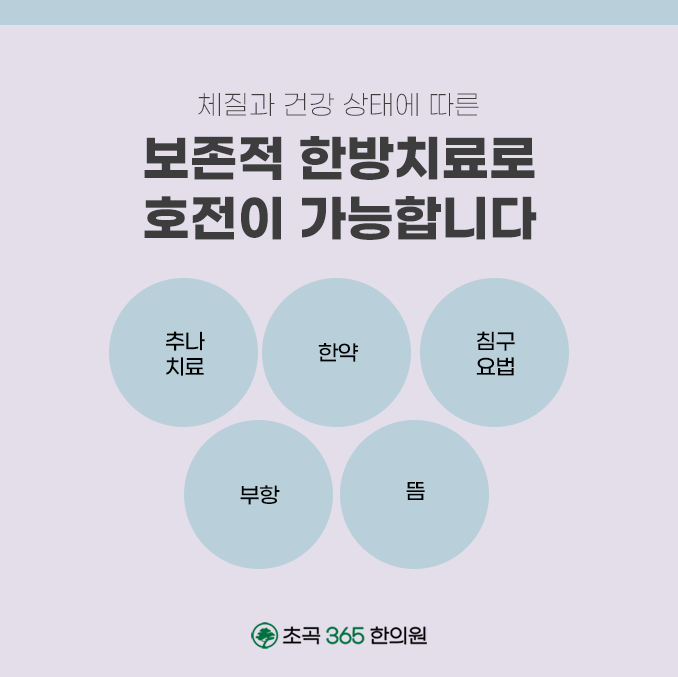 안녕하세요. 환자 분의 상황에 맞춰서 한의학 치료를 시행하여 신체의 아픔을 다스리는 한의원, 초곡365한의원입니다. 본원은 환자 분들의 진료 편의를 높이고자, 평일에 매일 야간진료를 하고 있으며 주말, 연휴에도 진료를 보고 있습니다.