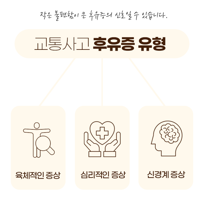 교통사고는 단 몇 초 만에 일어나지만, 그 여파는 오랜 시간에 걸쳐 나타날 수 있습니다. 무엇보다 중요한 것은 사고 이후 자신을 제대로 돌보는 것입니다. 통증이 없다고 해서 방심하지 말고, 몸이 보내는 신호에 귀 기울이며 초기부터 철저하게 관리한다면 더 큰 후유증 없이 건강한 회복이 가능합니다. 적절한 치료와 휴식, 생활 속 올바른 습관을 함께 병행하여 회복에 신경써야 합니다.