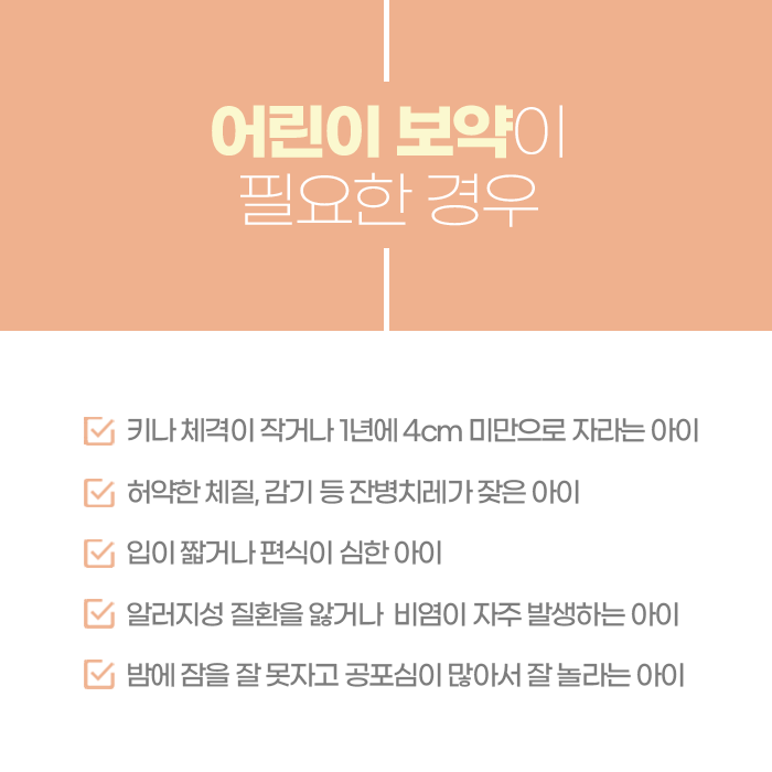 또래 아이들에 비해 성장 속도가 현저히 느리거나, 체질적으로 연약한 아이들에게도 맞춤형 보완법이 중요합니다. 연간 성장 폭이 4cm 이하인 경우는 성장판 자극 부족, 호르몬 불균형, 영양 흡수 장애 등이 원인일 수 있습니다. 이런 상황에서는 단순히 키 성장만을 목표로 하기보다 전신 기능과 소화 능력, 기혈 순환 등을 함께 개선하는 종합적인 접근이 필요합니다.
