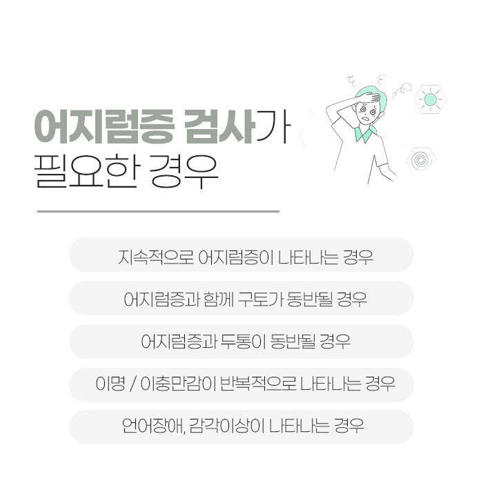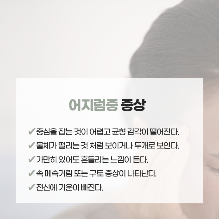 어지럼증은 일상에서 흔히 경험할 수 있는 증상 중 하나로, 자신이나 주변이 실제로는 움직이지 않는데도 마치 회전하거나 흔들리는 것처럼 느껴지는 상태를 말합니다. 흔히 ‘현기증’이라고도 불리며, 짧은 시간 안에 사라지는 경우도 있지만, 때에 따라 반복되거나 오래 지속되면 일상생활에 불편함을 줄 뿐 아니라 다른 질환의 신호일 수 있어 주의가 필요합니다. 특히 두통이나 메스꺼움, 구토와 함께 나타날 경우에는 원인을 정확히 파악하고 알맞은 치료를 받는 것이 중요합니다.