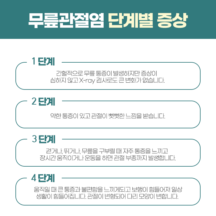 무릎 통증은 단순히 불편함을 넘어 삶의 질을 크게 떨어뜨릴 수 있습니다. 처음에는 가벼운 불편감이나 뻐근함으로 시작되지만, 점차 움직임에 제한을 주거나 계단을 오르내릴 때 찌릿한 통증이 나타나는 등 일상적인 활동 자체가 힘들어질 수 있습니다. 더 심해지면 관절이 붓거나 열감이 동반되기도 하며, 장기적으로는 관절 변형이나 퇴행성 관절염으로 발전할 위험도 존재합니다.