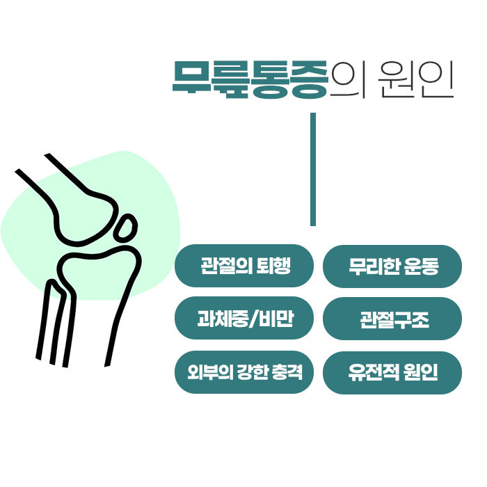 무릎 질환은 그 원인이 다양합니다. 대표적인 원인으로는 ‘퇴행성 관절염’, ‘연골연화증’, ‘반월상 연골판 손상’, ‘슬개골 통증 증후군’, ‘십자인대 손상’ 등이 있으며, 각 질환마다 발생 원인과 증상이 다릅니다. 예를 들어 퇴행성 관절염은 연골이 닳아 없어지며 뼈끼리 직접 맞닿아 통증을 유발하는 질환으로, 주로 중년 이후에 많이 발생합니다. 반면, 반월상 연골판 손상이나 십자인대 손상은 스포츠 활동이나 무리한 동작으로 인해 젊은 층에서도 흔히 발생할 수 있는 부상입니다.
