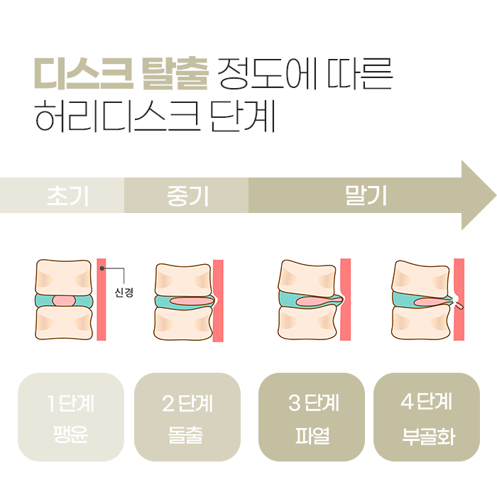 디스크 질환은 초기, 중기, 말기의 세 단계로 나눌 수 있습니다. 초기 단계에서는 섬유륜에 미세한 손상이 생기고, 수핵이 팽윤된 상태입니다. 중기에는 수핵이 돌출되어 신경을 압박하고, 말기에는 섬유륜이 완전히 파열되면서 수핵이 척추 밖으로 빠져나옵니다. 시간이 지나면 수핵이 단단하게 굳어 부골화가 일어나며, 이는 염증을 일으키거나 지속적인 통증을 유발할 수 있습니다. 말기 단계에서는 수술적 치료가 필요할 수 있지만, 초기와 중기에는 비수술적인 방법으로도 효과적인 회복이 가능하다고 포항 디스크치료 한의원 에서는 이야기 합니다.