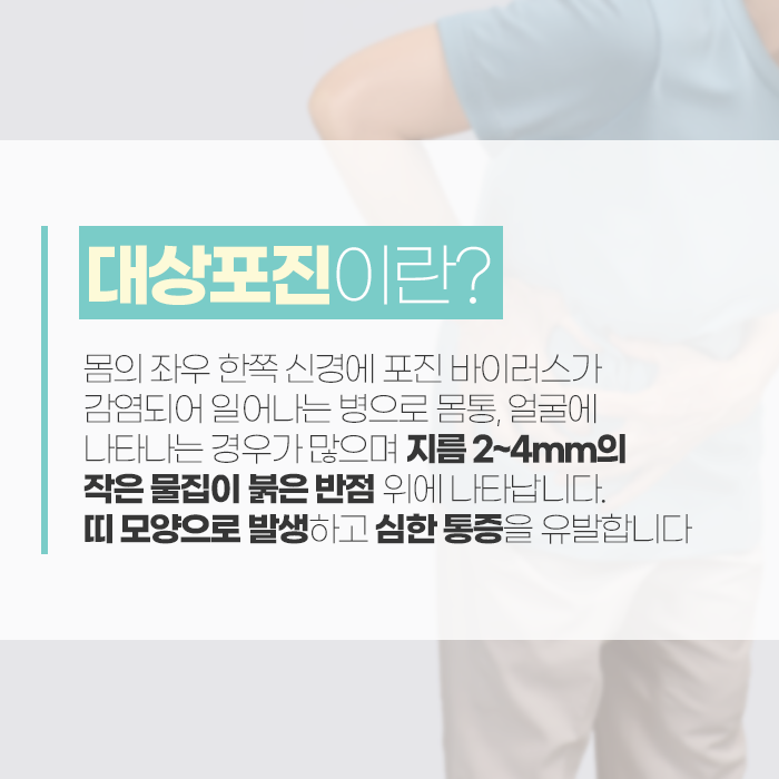 대상포진은 많은 사람들이 이름은 들어봤지만, 실제로는 그 심각성을 잘 알지 못하는 질환 중 하나입니다. 이 질환은 수두를 일으키는 바이러스와 동일한 수두 즉, 대상포진 바이러스가 원인이 됩니다. 어린 시절 수두를 앓고 나면 겉으로 보이는 증상은 사라지지만, 바이러스가 완전히 몸에서 사라지는 것은 아닙니다. 신경절 속에 숨어 있다가, 우리 몸의 면역력이 떨어지는 순간 기회를 잡아 다시 활동을 시작하는데, 그때 나타나는 것이 바로 대상포진입니다. 그렇기 때문에 누구나 잠재적으로 대상포진 환자가 될 수 있으며, 특히 중년 이후로 발병률이 눈에 띄게 증가하는 것이 특징입니다.