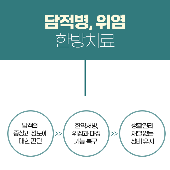 이러한 경우 단순히 소화제를 복용해 일시적으로 속을 달래는 것만으로는 근본적인 개선이 어렵습니다. 소화제는 증상을 잠시 완화해 줄 수 있지만, 위장의 운동 능력과 기능을 회복시키는 데까지는 도움을 주지 못하기 때문입니다. 따라서 위장 자체의 회복을 도모하는 치료가 필요합니다. 한방에서는 담적을 해소하고 위장을 따뜻하게 하여 소화 능력을 되살리는 방식으로 접근합니다. 개인의 체질과 증상에 맞는 한약 처방과 함께, 위장의 기혈순환을 촉진하는 침 치료, 뜸, 약침 등을 병행하여 전체적인 소화 기능을 강화하는 데 도움을 줍니다.