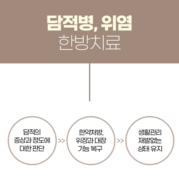 위장이 건강해야 일상도 편안합니다. 반복되는 소화기 불편감으로 생활이 불편하다면, 담적 여부를 고려하고 증상의 원인을 정확히 다스리는 것이 중요합니다. 치료는 환자의 체질과 증상 경과에 따라 맞춤형으로 진행되는 것이 중요합니다. 동일한 증상이라도 원인과 대응은 각기 다를 수 있기 때문에 체질과 증상에 대하여 세심한 진단과 관리가 필수적입니다. 지금부터라도 소화기 건강을 바로잡아, 편안한 속을 되찾으시고 증상을 개선하여 일상 생활이 원활하게 유지될 수 있도록 관리와 치료에 신경 쓰는 것이 필요합니다.