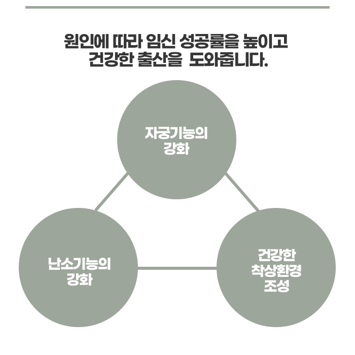 한의학적 치료의 가장 큰 장점은 개인 맞춤형 치료입니다. 각 여성의 체질과 상태에 맞춰 치료가 이루어지기 때문에, 냉한 체질이라면 몸을 따뜻하게 해주는 방향으로 치료하고, 열이 많은 체질이라면 열을 내려주는 치료가 이루어집니다. 또한 식습관, 운동, 수면, 스트레스 관리 등도 함께 병행되며, 부부가 함께 치료를 받으면 효과가 배가될 수 있습니다.