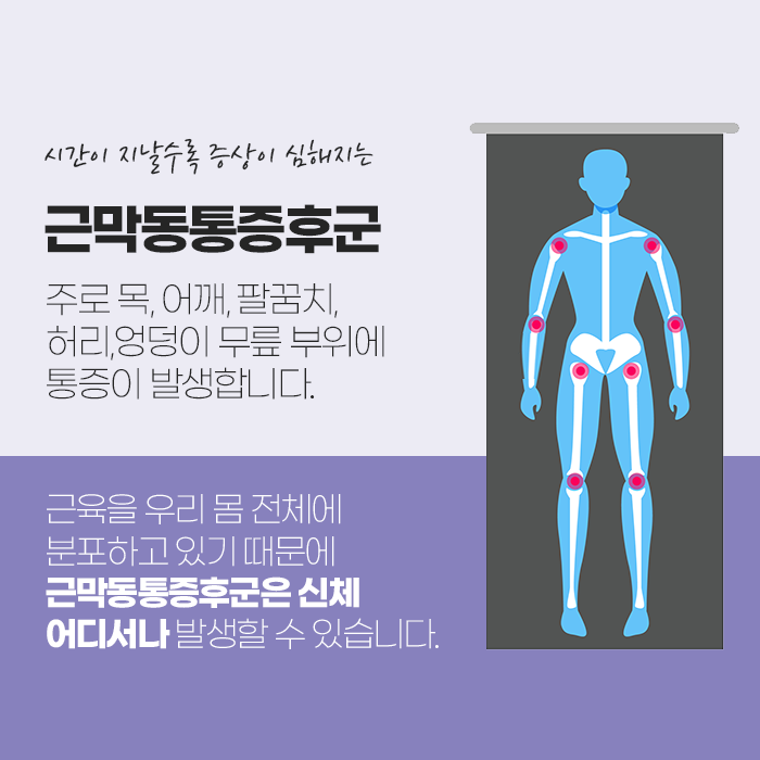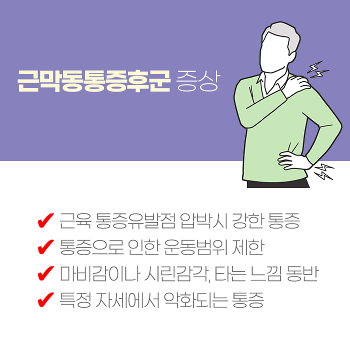 일상 속에서 어깨나 목, 허리 등이 뻐근하고 무겁게 느껴질 때, 많은 사람들이 이를 단순한 근육 뭉침이나 ‘담이 들었다’는 표현으로 넘기곤 합니다. 하지만 이러한 증상이 자주 반복되거나 오래 지속된다면, 근막동통증후군일 가능성을 고려해볼 수 있습니다. 평소보다 신체를 과도하게 사용했거나, 잘못된 자세가 반복된 경우에 쉽게 발생할 수 있는 이 증상은 단순한 불편함을 넘어 일상생활 전반에 영향을 줄 수 있습니다.
