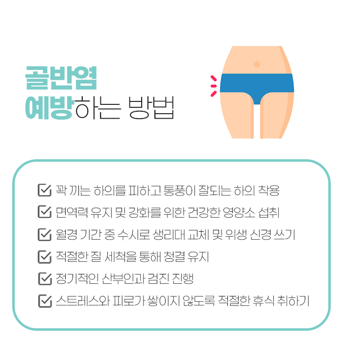 또한 스트레스와 피로는 면역력 저하를 초래하여 골반염 발병 위험을 높일 수 있으므로 이를 관리하는 것이 중요합니다. 성관계 후에는 적절한 위생 관리가 필요하고, 정기적인 산부인과 검진을 통해 이상 징후를 조기에 발견하는 것도 예방에 큰 도움이 됩니다. 옷차림에도 신경을 써야 합니다. 통풍이 잘 되는 옷을 입고, 너무 꽉 끼는 하의나 속옷은 피하는 것이 좋습니다. 또한, 면역력을 강화하기 위해 균형 잡힌 식사를 하고, 생리 중에는 자주 생리대를 교체하며 청결을 유지하는 것이 예방에 효과적입니다.