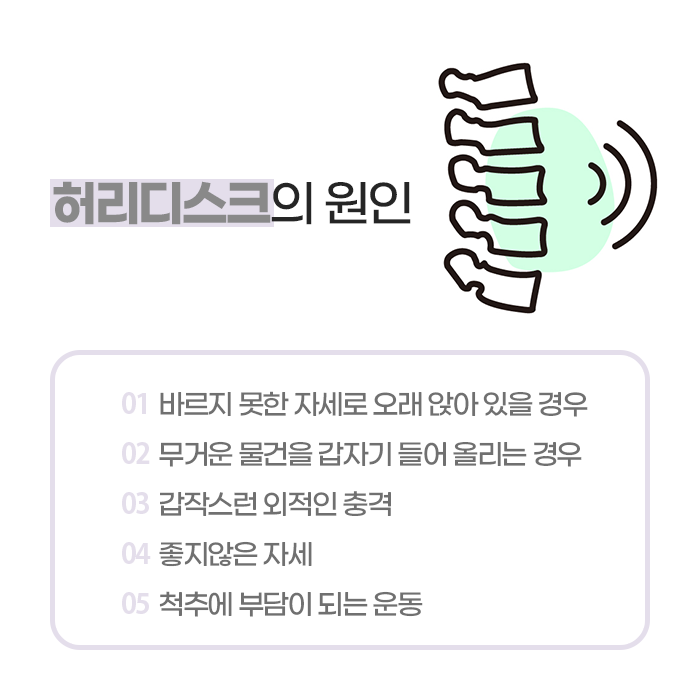 일상에서 허리에 부담을 주는 습관은 생각보다 많습니다. 장시간 앉아서 일하거나, 바르지 못한 자세로 스마트폰이나 컴퓨터를 사용할 때, 혹은 무거운 물건을 갑작스럽게 들 때마다 허리는 계속해서 압력을 받게 됩니다. 이렇게 반복적인 자극이 누적되면, 척추 사이에 위치한 추간판 즉, 우리가 흔히 말하는 ‘디스크’에 손상이 생기기 쉽습니다.