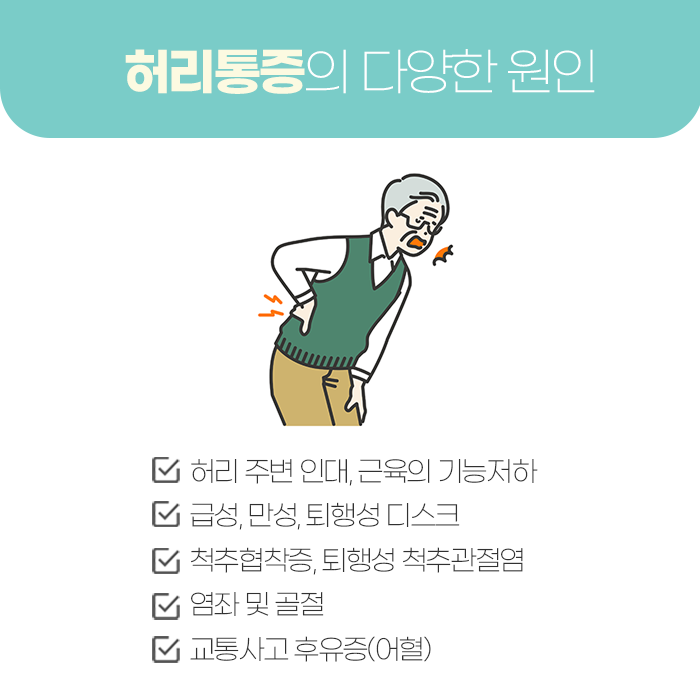 허리 통증이 생기면 척추를 지지하는 근육과 인대, 디스크, 신경이 제 기능을 하지 못하면서 주변 부위에도 영향을 미칩니다. 통증이 엉덩이나 다리까지 퍼지거나 저림·감각 둔화 같은 증상이 나타나는 경우에는 신경이 압박을 받는 신호일 수 있습니다. 따라서 통증이 사라질 때까지 기다리기보다는, 조기에 정확한 진단과 치료를 받는 것이 중요합니다.
