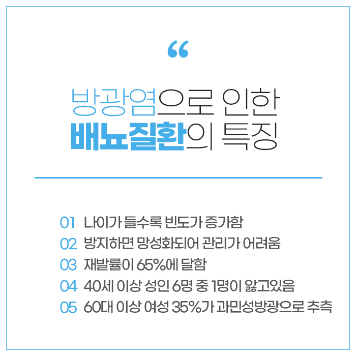 방광염이 발생하면 방광 점막의 염증으로 인해 저장 능력이 떨어지고 민감도가 높아져 적은 양의 소변에도 자극을 강하게 느끼게 됩니다. 이 때문에 새벽에도 금방 요의를 느끼고 잠에서 깨는 일이 반복됩니다. 배뇨 시 통증, 잔뇨감, 절박뇨 등이 함께 있다면 방광염 또는 다른 질환을 의심해야 하며, 이러한 문제가 장기간 지속되면 방광 기능은 점점 약해지고 야간뇨가 악화될 수 있습니다. 특히 만성적인 야간뇨는 면역 기능 저하, 호르몬 조절의 불균형, 스트레스 증가와도 연관되므로 초기에 바로잡는 것이 매우 중요합니다.