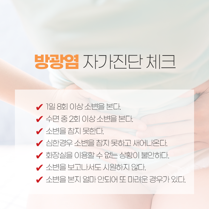 그러다 보니 새벽에도 요의를 금방 느껴 잠이 자꾸 깨게 되죠. 만약 배뇨 시 통증이 있거나 잔뇨감, 절박뇨 같은 증상이 함께 있다면 방광염 가능성을 반드시 고려해야 합니다. 이런 상태를 그대로 두면 방광 기능이 점점 약해지고, 결국 야간뇨도 더 심해질 수 있습니다. 만성적으로 지속되면 면역력 저하, 호르몬 불균형, 스트레스 증가까지 악영향을 줄 수 있으니 초기에 관리하는 게 정말 중요합니다.