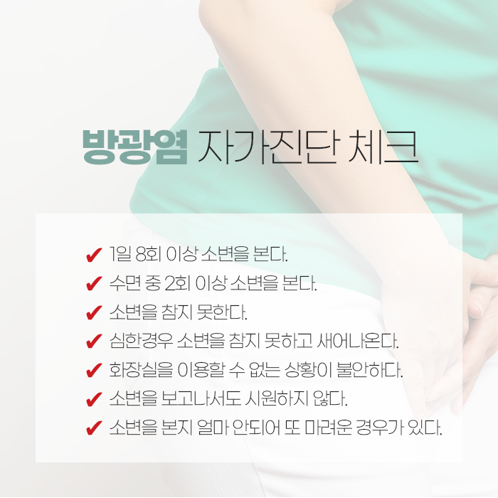 이로 인해 소변을 참기 어렵거나 갑작스럽게 화장실을 가고 싶어지는 증상, 배뇨 시 통증이나 화끈거림, 그리고 야간뇨가 함께 나타날 수 있습니다. 이러한 상태가 오래 지속되거나 반복되면 밤에도 여러 차례 화장실을 찾게 되고, 수면이 계속 방해받게 됩니다.