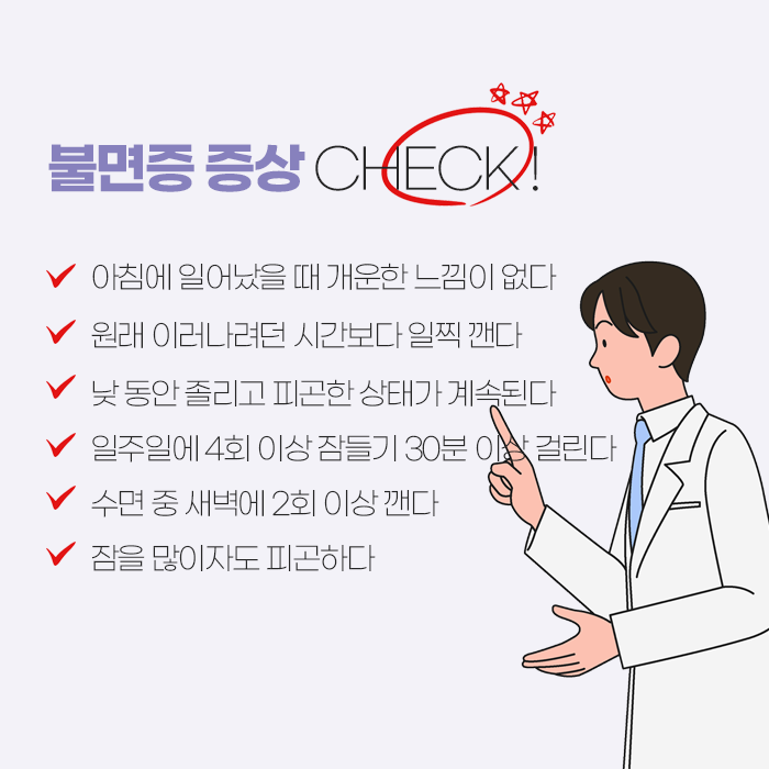 불면증 관리의 핵심은 ‘반드시 잠을 자야 한다’는 부담에서 벗어나 몸과 마음이 자연스럽게 이완될 수 있도록 돕는 데 있습니다. 수면이 안정되면 활력 회복은 물론 면역 상태와 감정 조절에도 긍정적인 변화가 나타날 수 있습니다. 불면이 반복되어 일상에 영향을 주고 있다면 혼자 견디기보다 진료를 통해 도움을 받아보는 것이 보다 건강한 선택이 될 수 있습니다.