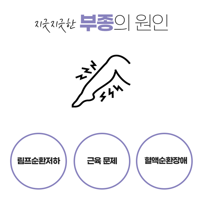 부종이 생기는 원인은 크게 두 가지로 나눌 수 있습니다. 첫째, 생활습관과 관련된 요인입니다. 염분 과다 섭취, 장시간 같은 자세 유지, 과로, 불규칙한 수면, 운동 부족 등이 대표적입니다. 특히 여성은 생리 전후나 임신 중 호르몬 변화로 인해 부종이 쉽게 발생할 수 있습니다. 둘째, 체내 장기 기능과 관련된 요인입니다. 심장, 신장, 간 기능 저하, 림프 순환 문제, 정맥류 등은 전신 또는 특정 부위 부종의 원인이 되며, 이런 경우 단순 생활습관 개선만으로는 증상이 쉽게 개선되지 않습니다. 약물 복용이나 알레르기 반응, 염증성 질환도 부종의 원인이 될 수 있으므로, 장기적인 변화가 나타나면 의료기관에서 검사를 받아보는 것이 좋습니다.