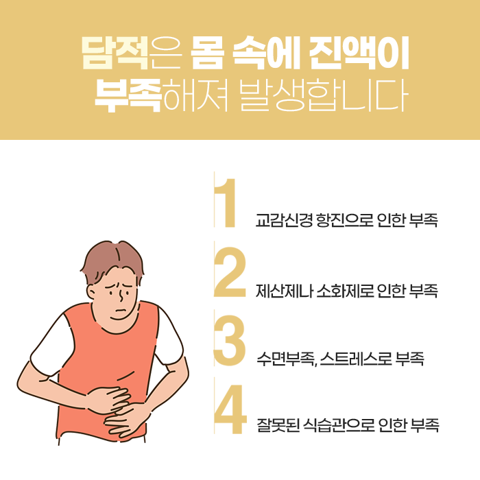 담적이 쌓이면 식사를 해도 속이 개운하지 않고, 위가 눌린 듯한 묵직함이 계속될 수 있습니다. 시간이 지나면서 쉽게 피곤해지고 식욕이 줄어들며, 배에 가스가 차는 느낌이나 잦은 트림으로 불편이 커질 수 있습니다. 이러한 현상은 체내 수분과 순환이 원활하지 않거나 위장에 부담을 주는 습관이 반복될수록 더 쉽게 나타납니다. 스트레스가 많은 환경, 수면 부족, 약물의 장기 복용, 기름지거나 자극적인 음식 위주의 식사 등이 대표적인 원인으로 꼽힙니다. 이러한 요소들은 위장의 기능을 서서히 약화시키고, 노폐물이 쌓이기 쉬운 조건을 만들게 됩니다. 특히 평소 소화력이 약한 편이라면 회복까지 더 많은 시간이 필요할 수 있어 더욱 세심한 관리가 요구됩니다.
