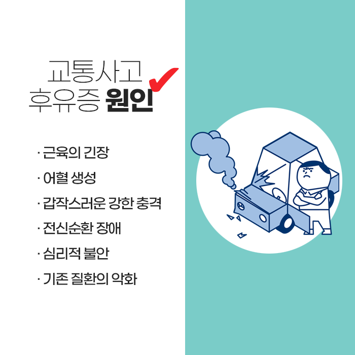 교통사고는 예고 없이 발생하며, 순간의 충격이 신체와 정신에 생각보다 깊은 영향을 남길 수 있습니다. 겉으로 상처가 없거나 사고 직후 통증이 거의 느껴지지 않는다고 해서 몸이 완전히 괜찮다고 단정하기는 어렵습니다. 차량 충돌이나 급정거로 전달된 힘은 피부 아래 근육, 인대, 관절, 신경까지 영향을 미쳐 눈에 띄지 않는 미세 손상이나 체형 불균형을 초래할 수 있습니다. 사고 당시에는 긴장과 호르몬 작용으로 통증이 덜 느껴질 수 있지만, 시간이 지나면서 목과 어깨 결림, 허리·골반의 묵직함, 손발 저림, 두통 등 다양한 증상이 서서히 나타날 수 있습니다. 이러한 변화는 단순한 피로나 컨디션 저하로 오해하기 쉬워, 초기 관리 시기를 놓치기 쉽습니다.