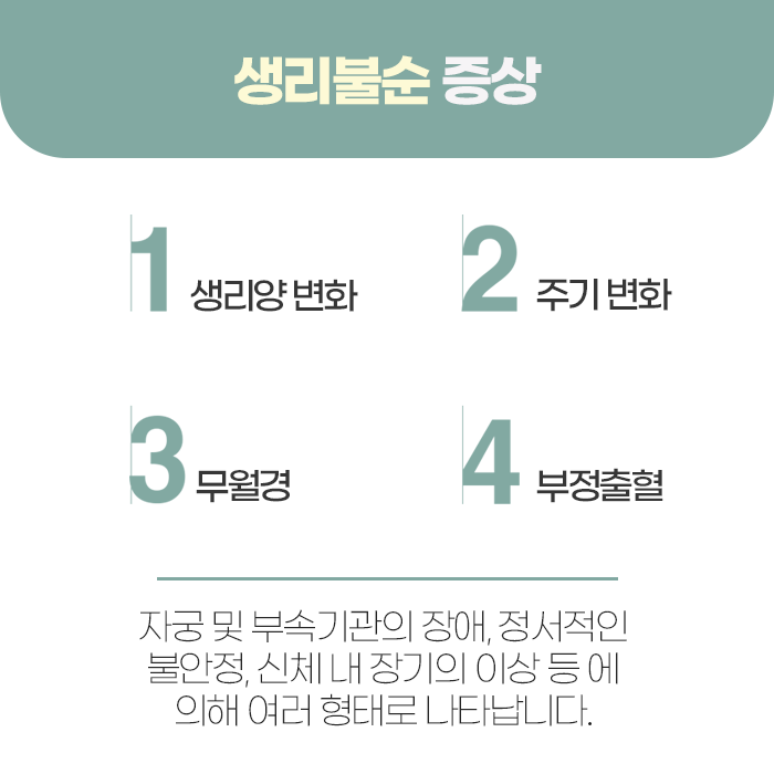 생리불순은 단순히 주기가 변한 현상을 넘어, 난소와 자궁, 내분비계의 기능 이상을 나타내는 중요한 신호일 수 있으며, 조기에 확인하고 대응하는 것이 필요합니다. 생리불순은 여러 형태로 나타납니다. 흔히 나타나는 희발월경은 생리 간격이 40일 이상 길어지고 점점 더 불규칙해지는 경우를 말합니다.