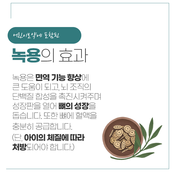 이와 함께 부항이나 뜸 치료는 순환을 개선해 신진대사를 활발하게 만들고, 추나요법은 성장 과정에서 틀어진 체형을 교정하여 바른 자세를 유지하도록 돕습니다. 녹용을 비롯한 한약재는 피로 회복과 혈류 개선, 에너지 증진에 도움을 주어 성장기 아이들이 활력을 되찾고 집중력과 체력을 함께 높일 수 있도록 합니다.